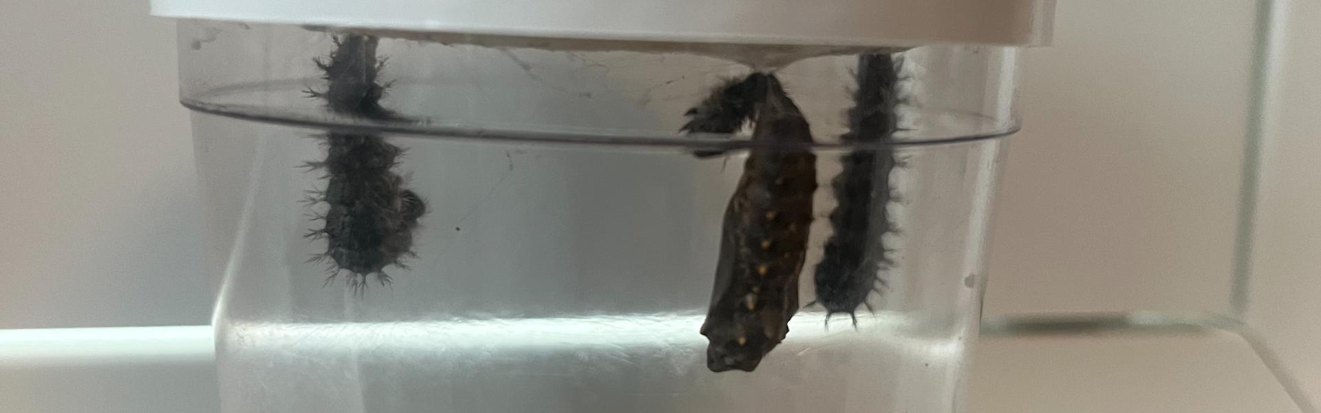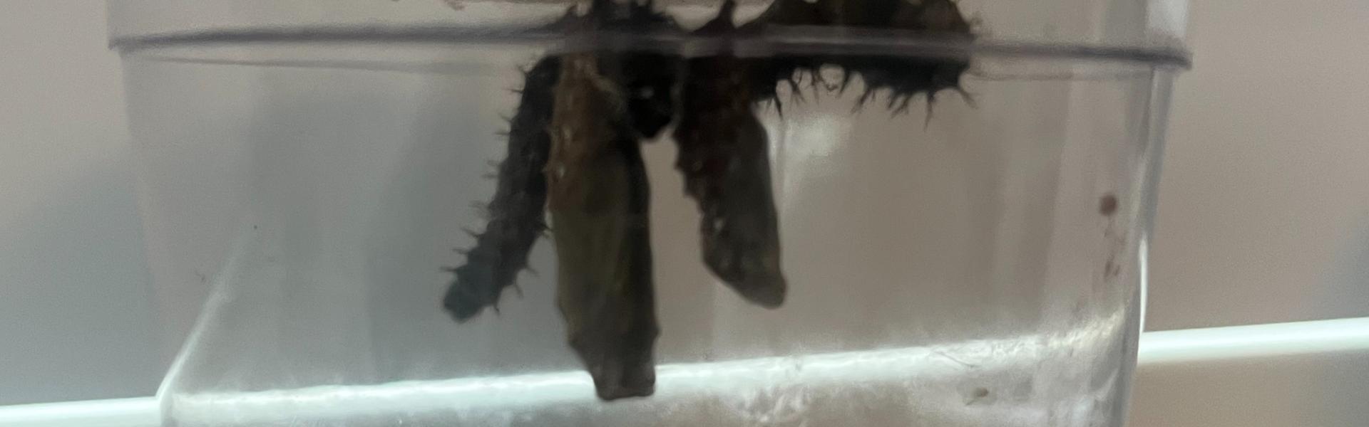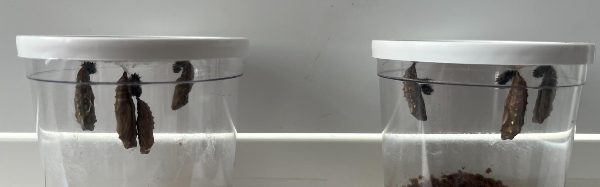 The chrysalises have been moved to the butterfly garden. Soon the butterflies will emerge!