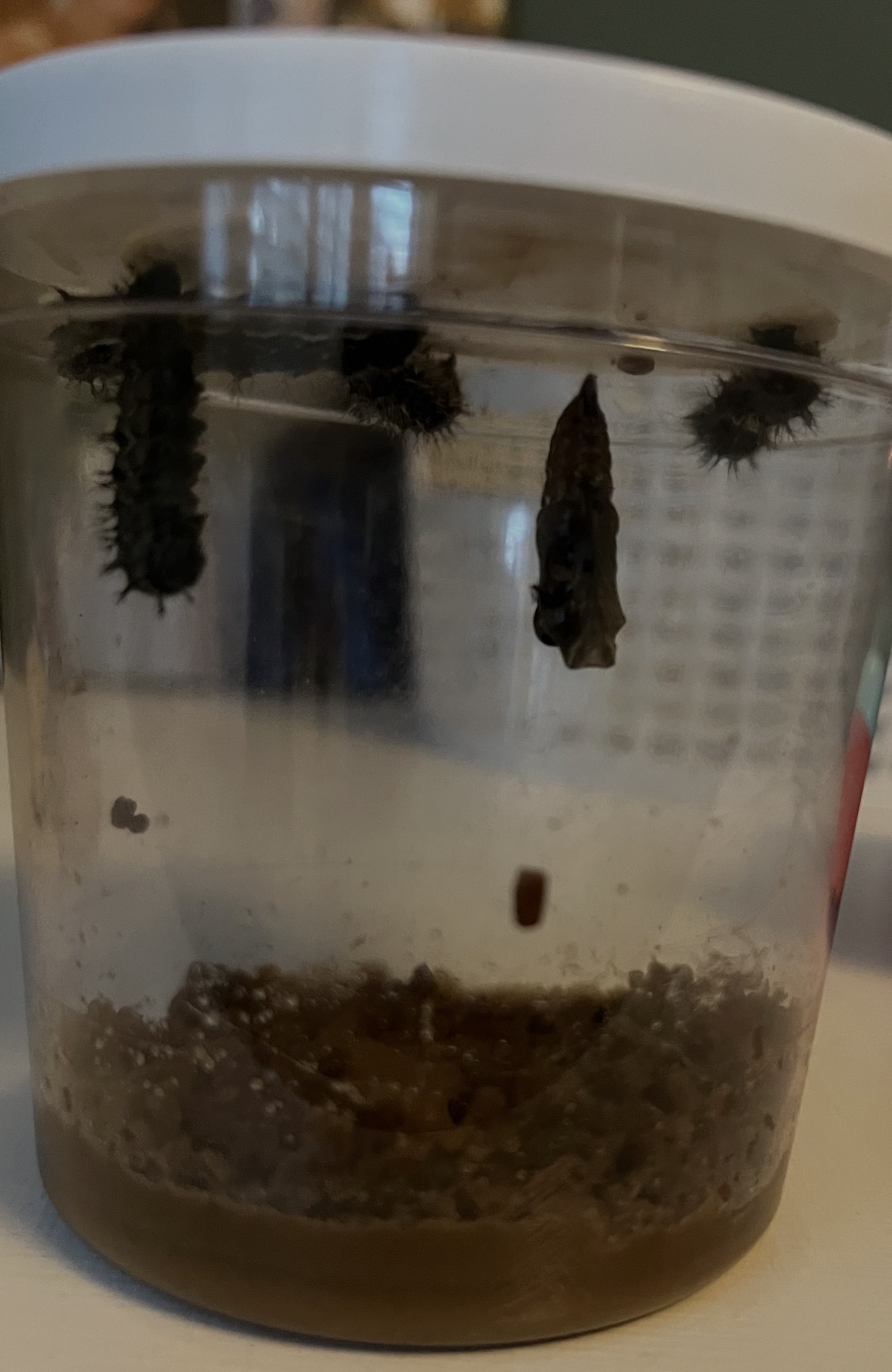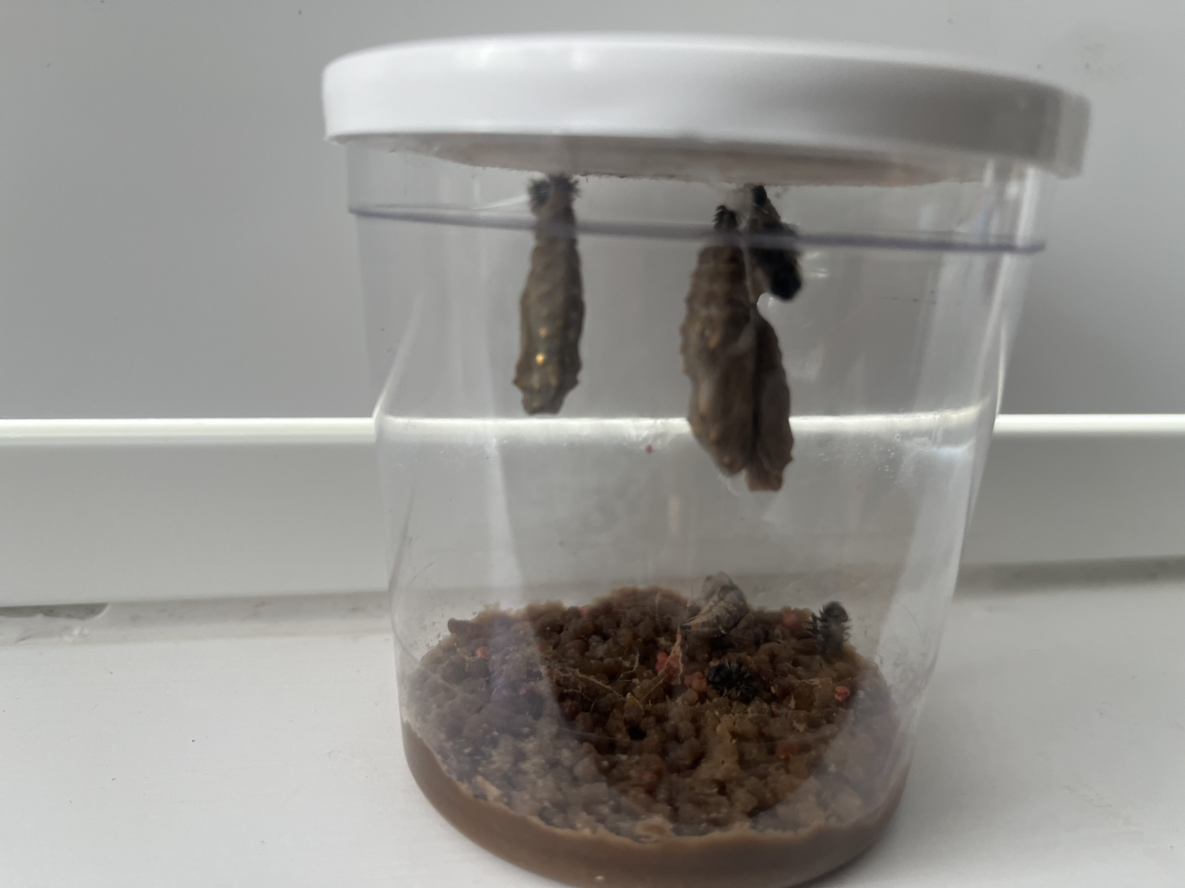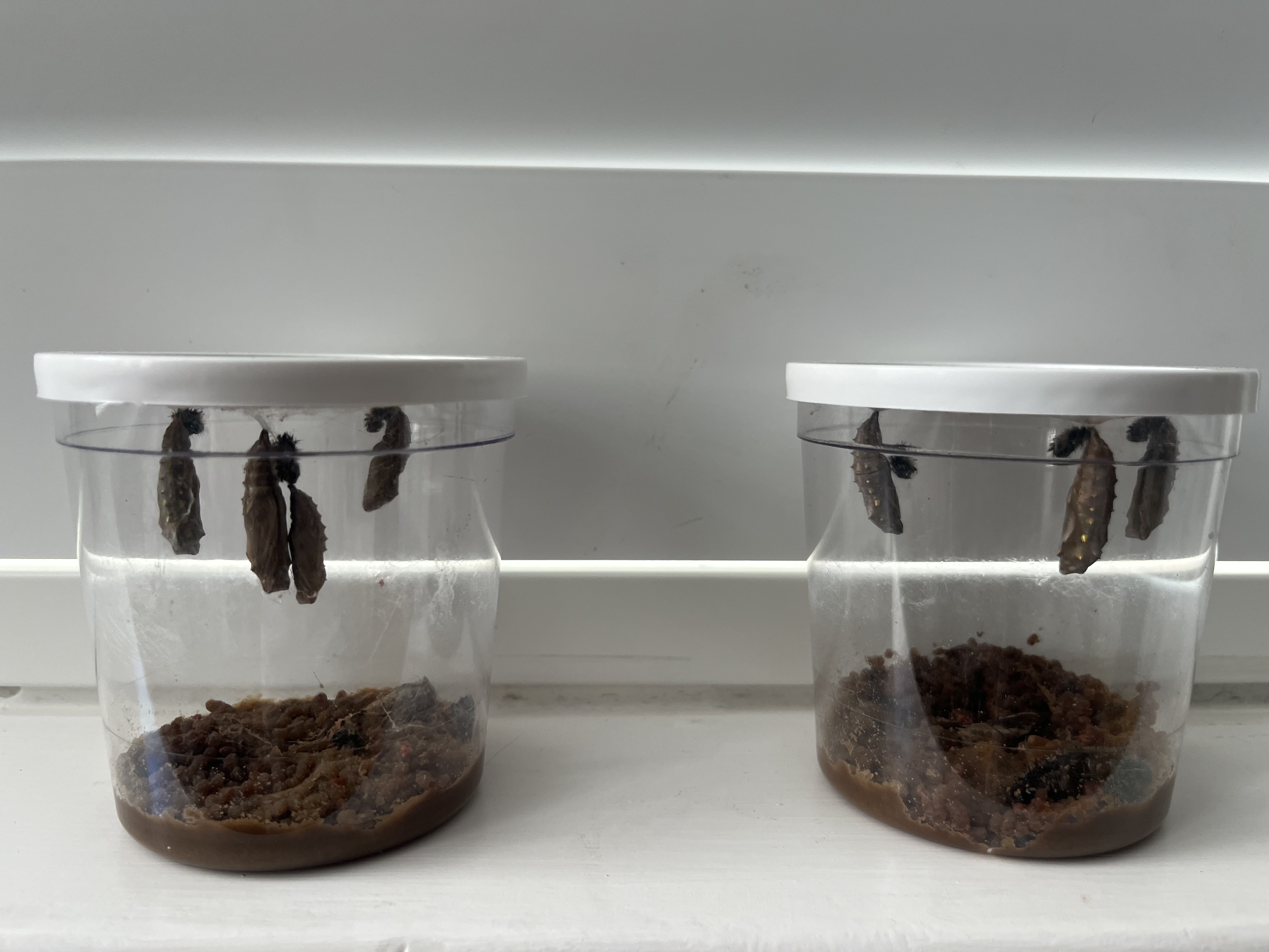The chrysalises have been moved to the butterfly garden. Soon the butterflies will emerge!
